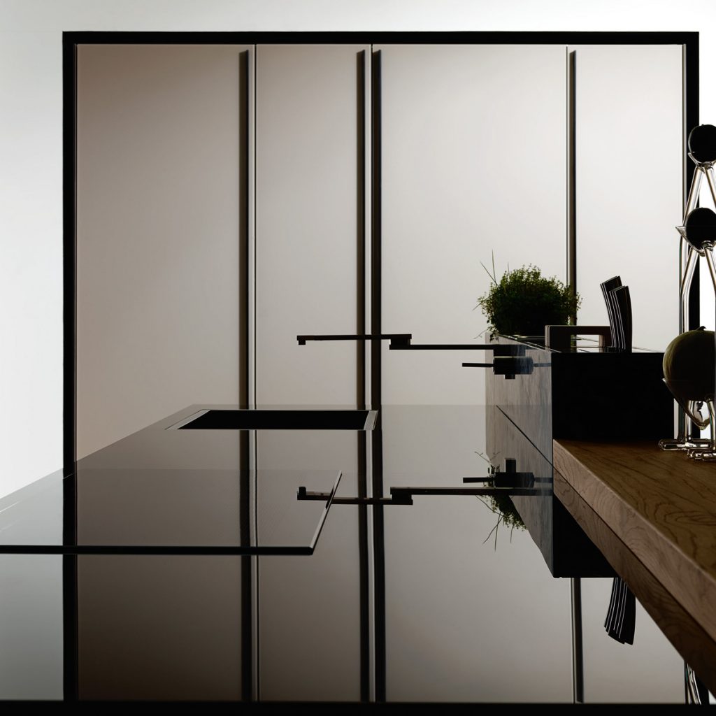 Ever seeking innovative solutions, in 1987 Valcucine introduced the use of glass based on a revolutionary intuition in terms of functionality and aesthetics: that a pure “vitreous mass” could be supported by a concealed, aluminium frame, and nothing else.