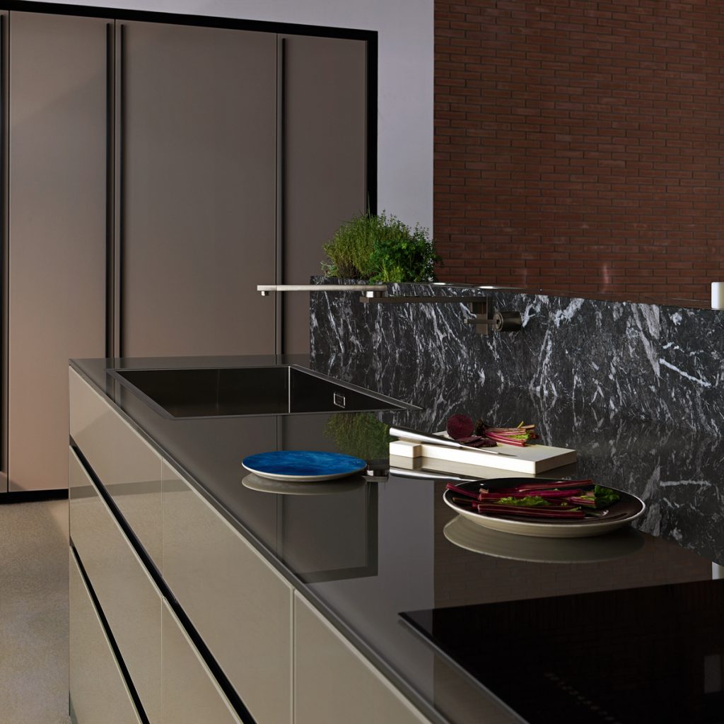 Graphic Vitrum increases the possibility of customising surfaces and contributes to making inimitable, unique kitchens.