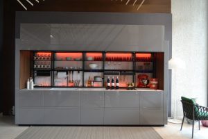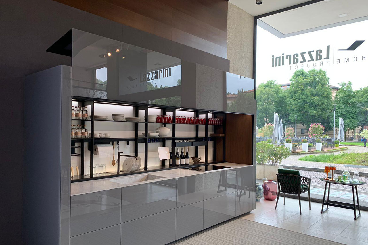 A wide surface of 500mq, obtained by the renovation of an ex-theatre which is on foot of Città Alta, is the frame of the launch of Logica Celata, the end product of brilliant research into space optimization and reinventing ergonomics. The Kitchen version, which completes the models available for Logica Celata, together with the Bar Preparation version, is also available.