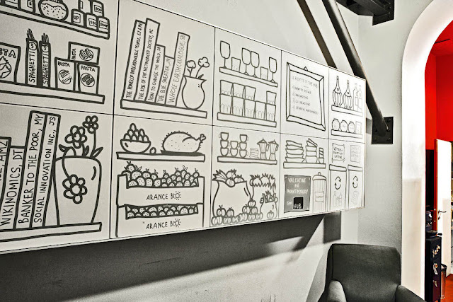 Nella creazione della nuova cucina si è rovesciato l’approccio top-down della progettazione, attraverso un processo interattivo e non lineare, partendo dalla co-creazione con gli Hubbers e sviluppatosi con la collaborazione tecnica e creativa dei designers Valcucine. Peculiarità della metodologia è che il progetto mantiene un alto grado di flessibilità ed elasticità, capace di accogliere il continuo cambiare e succedersi di necessità e idee alle quali lo spazio dovrà nel tempo rispondere.In piena filosofia Valcucine, la realizzazione dell’ intera cucina è avvenuta nel rispetto dell’ambiente con prodotti progettati seguendo i principi dell’ecocompatibilità. La nuova cucina parla di stratificazioni: un ambiente fatto di storia, che comunica la propria identità, attraverso anche una grafica realizzata ad hoc, in cui l’ ingrediente di “awesomness” disegna uno spazio che funzionerà come area di lavoro, di socializzazione, e di scuola di cucina e che soprattutto invita i fruitori a sperimentare e cambiare in base alle mutevoli esigenze.Tutti gli elettrodomestici della cucina, forniti da Electrolux, si distinguono per i bassi consumi di energetici e sono tutti classificati in classe A/A+.
