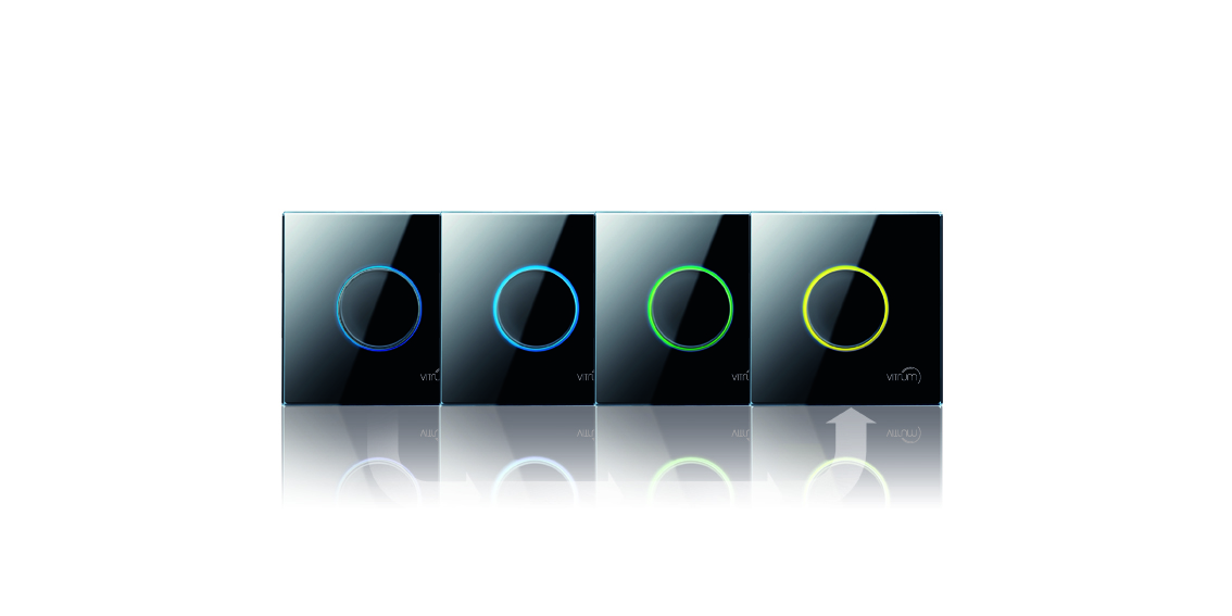 basta un movimento rotatorio per regolare ad esempio l’illuminazione di un ambiente o la temperatura di una casa. Inoltre, la tecnologia Wireless integrata in tutti i componenti consente a Vitrum di “dialogare” con telecomandi, Tablet Computer (es. iPad) e telefonini (iPhone).
