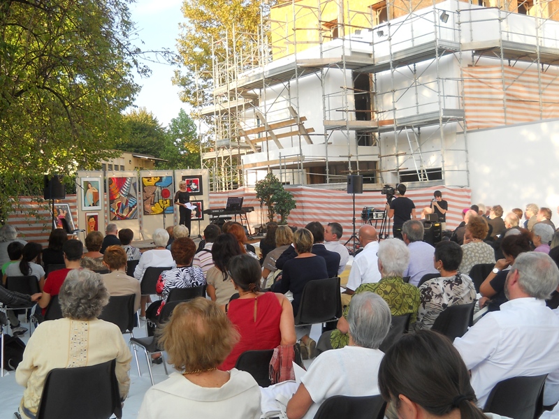 Grande partecipazione per la festa della Fondazione Bambini e Autismo ONLUS con la quale giovedì 22 Settembre si è festeggiato a Pordenone, in Via Roggiuzzole, il raggiungimento del tetto dell’edificio di “Vivi la città”. Una festa voluta in onore di una vecchia tradizione, quella della frasca, per la quale giunti al tetto si festeggia con tutti coloro che hanno aiutato alla realizzazione dell’edificio.