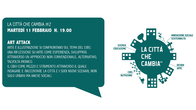 Per illustrare quelle che sono le potenzialità dell’arte e dell’illustrazione nel tema del cibo interverranno due figure legate al mondo della creatività: Rossana Ciocca, gallerista d’arte contemporanea e ideatrice del contenitore creativo temporaneo Cenaconme; Gianluca Biscalchin, giornalista e illustratore, curatore del progetto Cibology.org e autore del recente volume “Prêt-à-gourmet”, che sarà in vendita presso l’Eco Bookshop proprio durante la serata!
