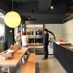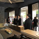 Anche qui, come nei più importanti showroom Valcucine, c’è un’area informazioni dove schizzi progettuali e sezioni di ante, top, basi ed elementi ergonomici sono esposti per raccontare il valore delle cucine in termini di sostenibilità, ergonomia, funzionalità e qualità.