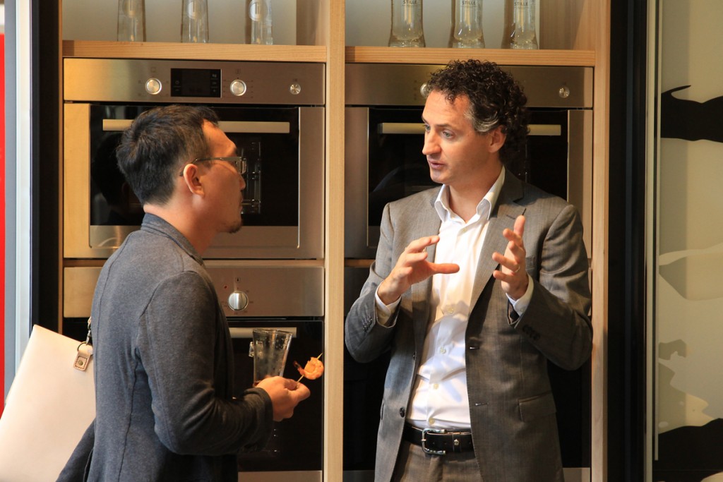 Anche qui, come nei più importanti showroom Valcucine, c’è un’area informazioni dove schizzi progettuali e sezioni di ante, top, basi ed elementi ergonomici sono esposti per raccontare il valore delle cucine in termini di sostenibilità, ergonomia, funzionalità e qualità.