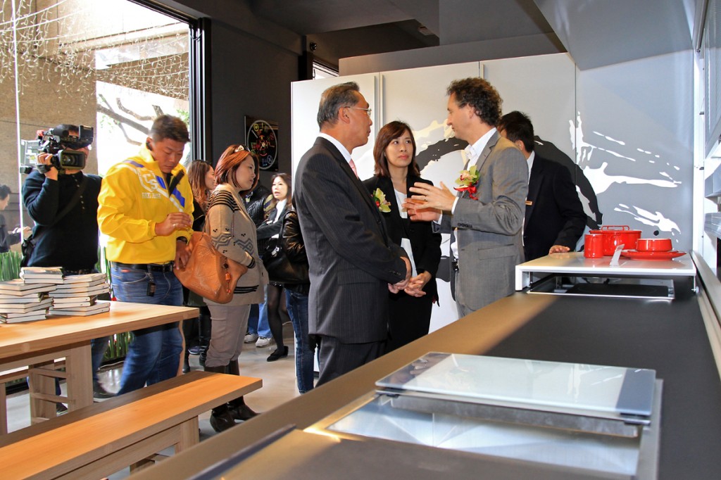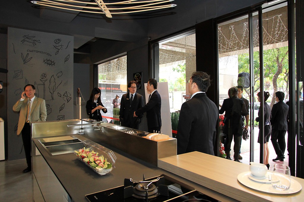 Nello showroom Kouhsiung sono esposti alcuni dei prodotti di maggior successo come Artematica Vitrum, la cucina che interpreta la qualità di uno dei materiali più affascinanti ed ecologici mai creati dall’uomo: il vetro. New Logica System, un innovativo schienale  in grado di ospitare e nascondere, all’occorrenza, tutte le attrezzature da cucina: lo scolapiatti, la bilancia, i piccoli elettrodomestici, i contenitori estraibili per cucinare, i portabottiglie,  le prese elettriche, un monitor, il portarotoli, il rubinetto, i ganci porta mestoli e anche la cappa. Meccanica, il sistema con una struttura leggera e un design innovativo composto da singoli elementi strutturali che sono collegati tra loro mediante giunzioni meccaniche.