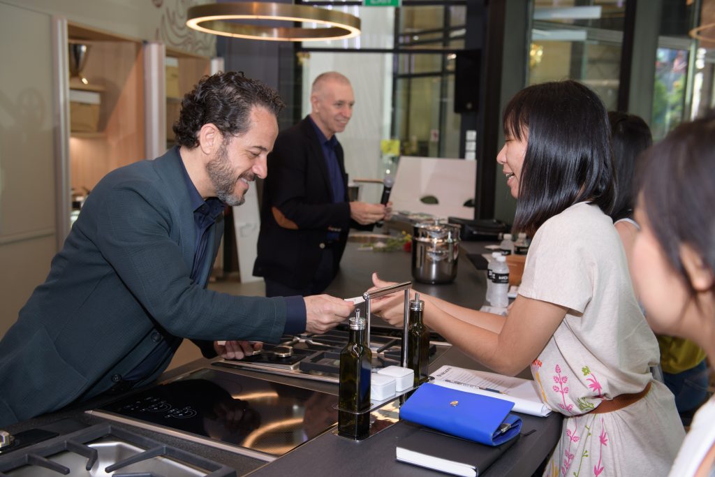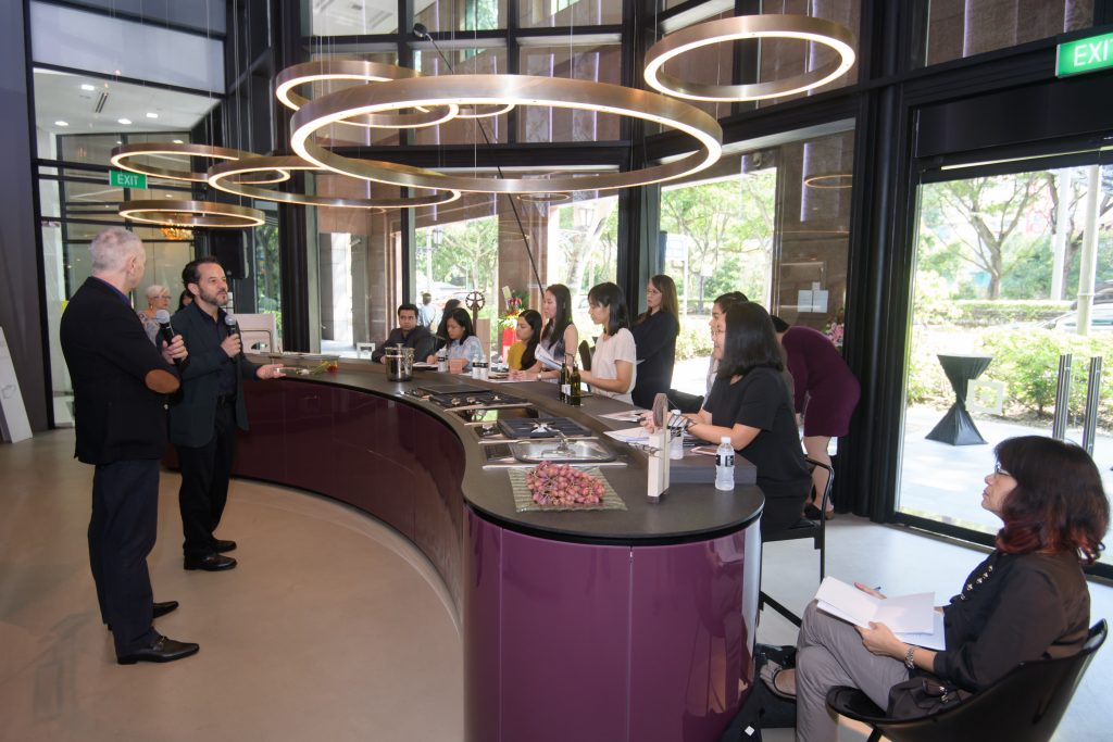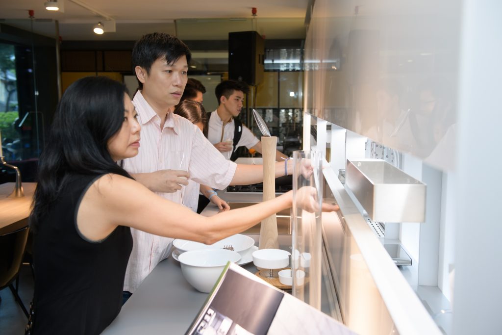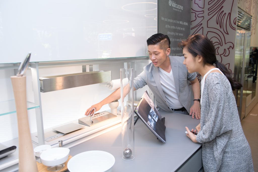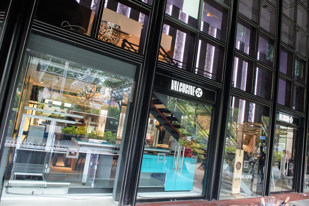 Valcucine, in entrambi gli showroom, sceglie di esporre i pezzi più iconici della collezione Driade, ad Hong Kong il tavolo Frate di Enzo Mari, le sedie Lagò in pelle di Philippe Starck; a Singapore i tavoli Didymos di Antonia Astori e Cugino di Enzo Mari, le sedie Nemo di Fabio Novembre, Lou Reed di Philippe Starck, gli sgabelli Mingx di Konstantin Grcic.