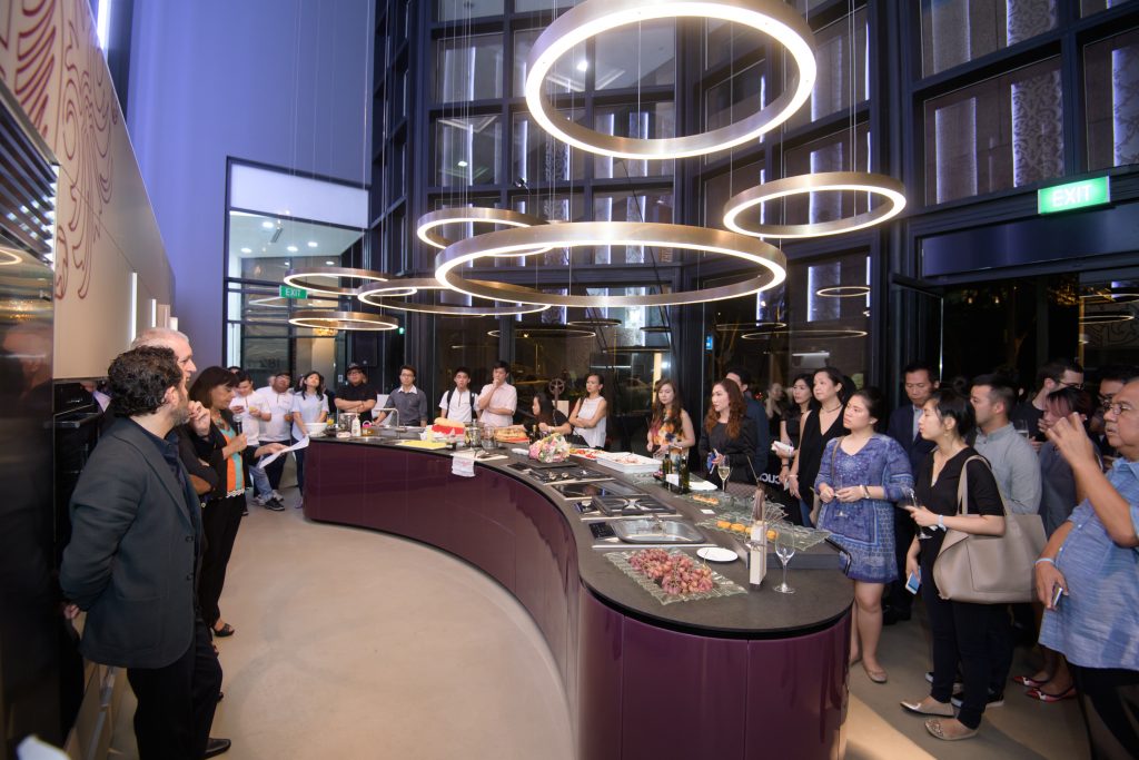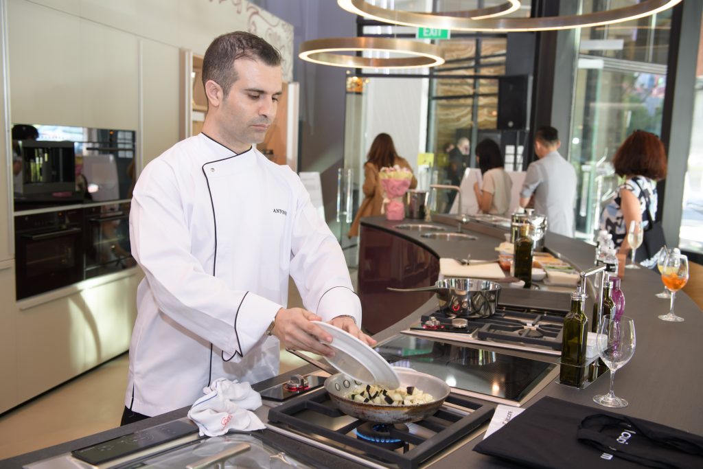 Le inaugurazioni degli showroom prevedono un evento con showcooking che vede protagonista un noto chef italiano. L’allestimento è incentrato su quattro cucine ove verranno presentate altrettante pietanze differenti in linea con la tipologia del cliente Valcucine cui si rivolgono: gourmet, tradizionalista, salutista e sperimentatore.