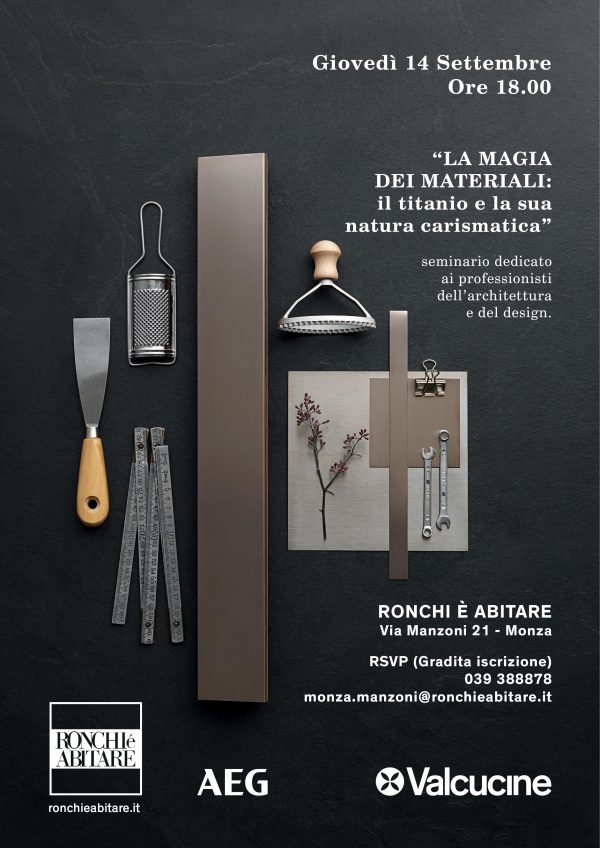 Valcucine Monza settembre 11, 2017October 18, 2017 by Cristina Pramparo Valcucine è lieta di invitarvi il 14 settembre 2017 a due appuntamenti nella sua nuova casa a Monza, presso Ronchi è Abitare, via Manzoni 21, Monza. E’ gradita iscrizione telefonica 039-388878 oppure via e-mail a monza.manzoni@ronchieabitare.it Leave a Reply Cancel replyYour email address will not be published. Required fields are marked *CommentYou may use these HTML tags and attributes: <a href="" title=""> <abbr title=""> <acronym title=""> <b> <blockquote cite=""> <cite> <code> <del datetime=""> <em> <i> <q cite=""> <s> <strike> <strong> Name * Email * Post navigation Valcucine @ London Design FestivalNuovo Valcucine London | Forza ALTRE NEWS Educational tour a Madrid all’insegna di ecodesign, interiors e architettura sostenibile In Eventi Valcucine da Green Pea nel segno della sostenibilità In Eventi L’orologio dell’acqua, gli Stati Generali di ambiente e clima a Treviso In Eventi