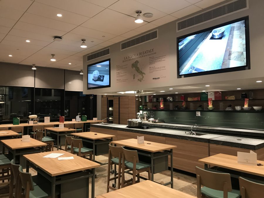 Nell’aula didattica, supervisionata da Lidia Bastianich – punto di riferimento della cultura gastronomica tricolore in America – si svolgono corsi di cucina, laboratori e degustazioni che mirano a far conoscere da vicino come nascono le eccellenze italiane.