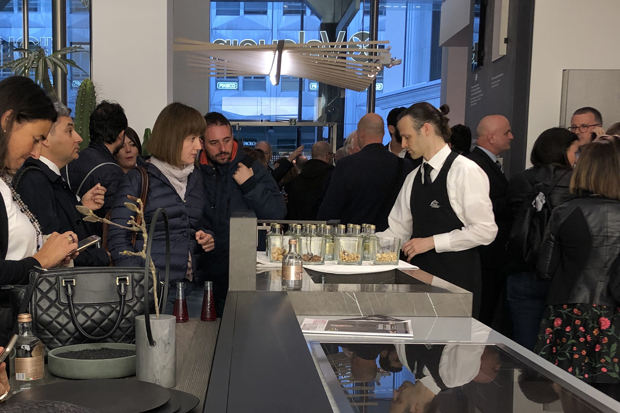 Giovedì 10 aprile 2019, il giorno successivo al lancio di Logica Celata presso la Rinascente, abbiamo celebrato l’apertura del tour mondiale di Logica Celata nel negozio Valcucine Brera di Milano con il Ceo, Giuseppe di Nuccio. La prima tappa del tour mondiale di Logica Celata è iniziata con la configurazione Bar, in una suggestiva location con un progetto esclusivo accompagnato dai migliori bar partners italiani: Campari Soda, Bastianich, Nonino, Gambrinus, Dolomia e Illy. È stata inoltre presentata la versione cucina che, assieme alla versione preparazione, completa i modelli disponibili di Logica Celata. La foto avvincente, una pubblicità realizzata negli anni Sessanta per Campari Soda da Franz Marangolo, un illustratore di Milano, è stata liberamente interpretata nella facciata di Logica Celata Bar in uno stile giocoso.