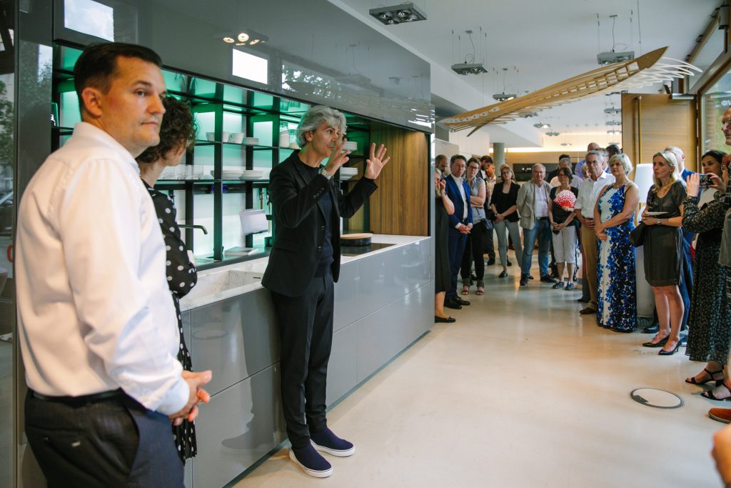 Dopo il successo ottenuto dagli eventi di lancio a Milano, Londra, Miami, Chicago, New York, Toronto e Riga, Logica Celata atterra a Francoforte dove il flagship store Valcucine ha ospitato uno speciale evento la sera di martedì 18 giugno, a Zum Apothekerhof 2. I partner Christoph Böger e Stefanie Niehüser, con la presenza di Giuseppe Di Nuccio – CEO di Valcucine – hanno accolto i loro illustri ospiti e membri del mondo del design in uno splendido negozio che ospita l’ultimo capolavoro di Valcucine, la nuova cucina Logica Celata, disegnata da Gabriele Centazzo. Il miglior cibo, con un aroma italiano, uno showcooking, un vino italiano e l’esclusiva acqua minerale Minus 181 dal paesaggio glaciale del Parchim, un acqua che è entrata nel mondo gourmet, sono stati i partner dell’evento insieme a Gaggenau.