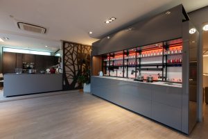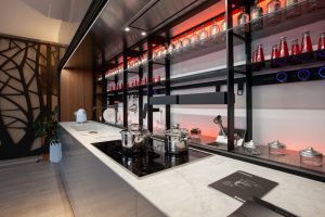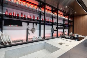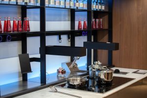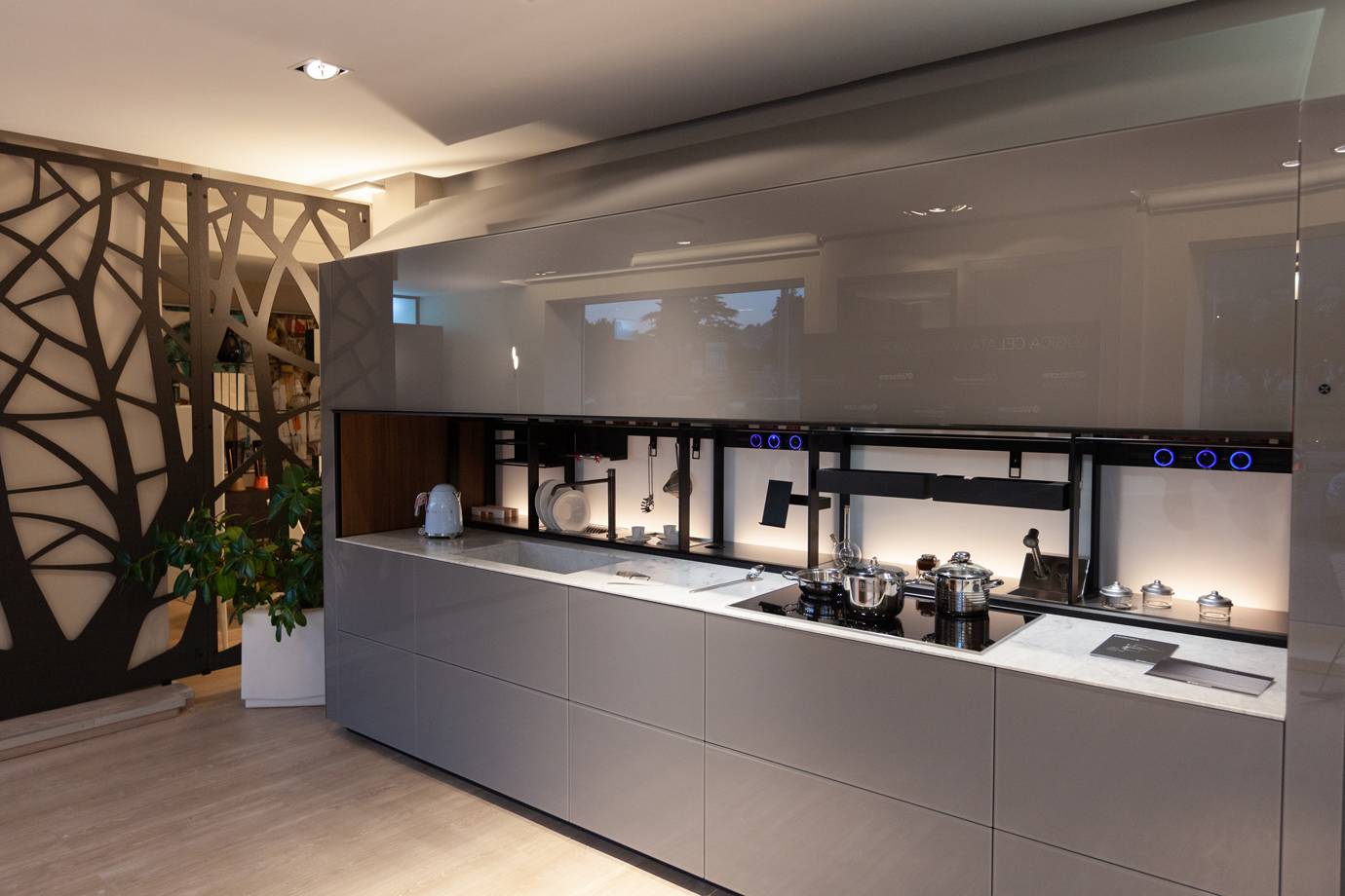 A centro di tutto Logica Celata, disegnata da Gabriele Centazzo. Frutto di un’ingegnosa ricerca volta a ripensare lo spazio e reinventare l’ergonomia, 2C Arredamenti la presenta nella versione cucina che, assieme alla versione bar, completa i modelli disponibili.