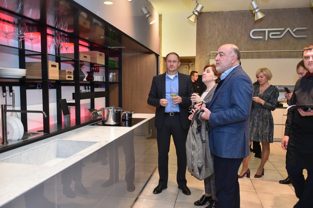 Il miglior cibo presentato dallo Chef Alex Vdovin e accompagnato da vino Italiano ha deliziato gli ospiti che ammiravano Logica Celata, frutto di un’ingegnosa ricerca volta a ripensare lo spazio e reinventare l’ergonomia, esposta nello showroom di Stels nella versione Cucina, che assieme alle versioni bar e preparazione, completa i modelli disponibili.