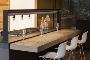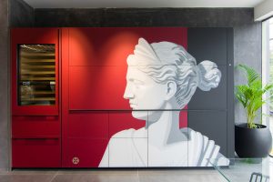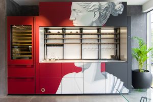 E’ esposta anche l’ultima nata, Logica Celata, frutto di un’ingegnosa ricerca volta a ripensare lo spazio e reinventare l’ergonomia, nella configurazione Bar e personalizzata con la tecnica esclusiva Valcucine Vitrum Arte. La straordinaria lavorazione a intarsio è un processo altamente innovativo dove però è ancora essenziale la paziente mano dell’uomo. Nascono così progetti esclusivi in perfetto equilibrio fra arte e design. Una volta chiusa, Logica Celata si trasforma in un elegante elemento di arredo e come un quadro di grande suggestione, sulla sua superficie rivive Demetra, la dea della mitologia greca.